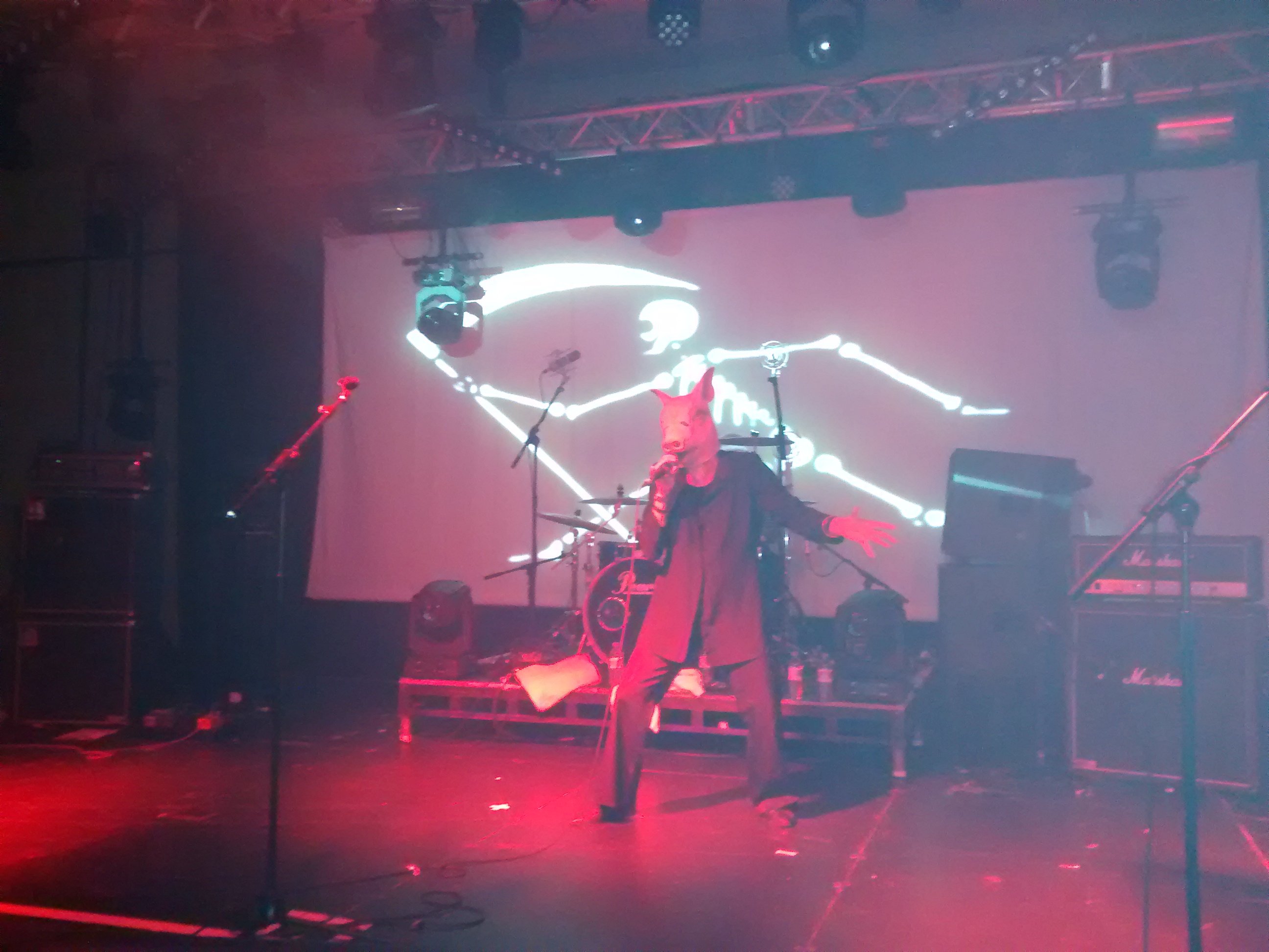 There’s an intermission, a tiny cluster of the faithful remain by the stage whilst piano recordings wash over them, and then Andi Sex Gang comes back with a pig head mask on. I’ve tried delivering that line any other way and I can’t.