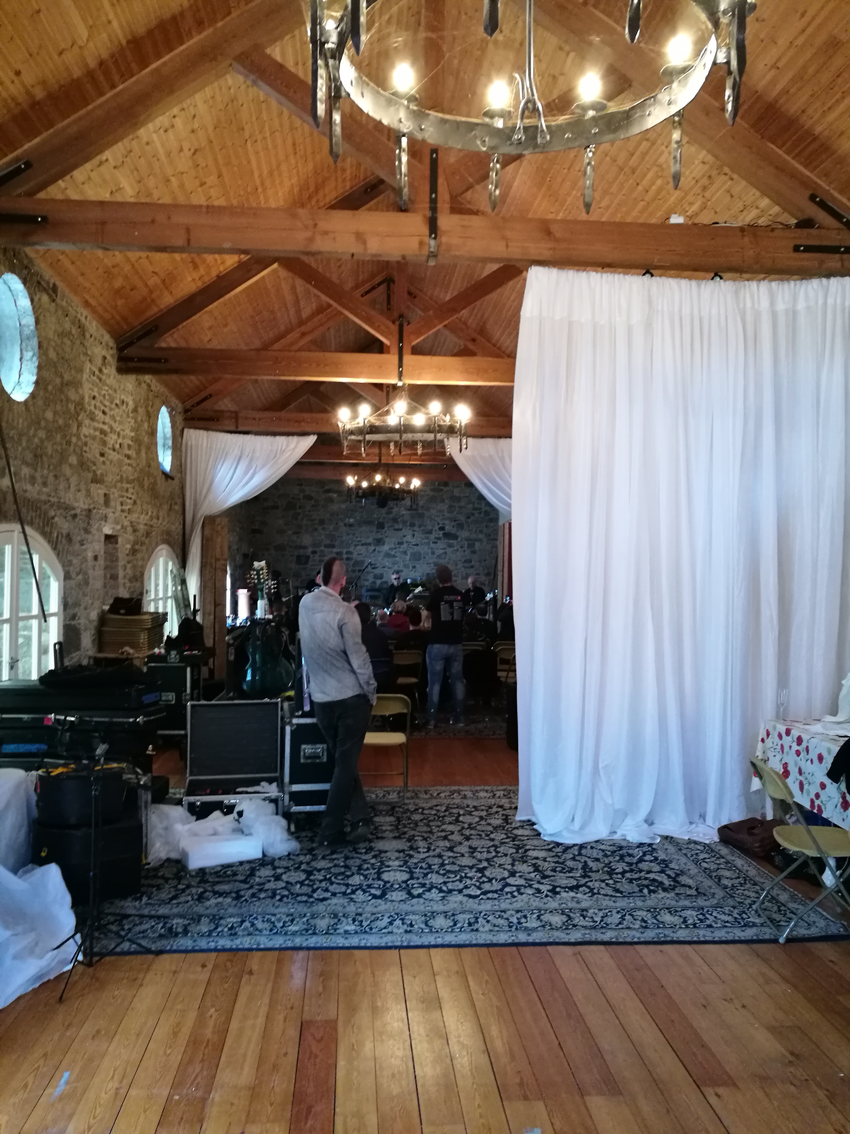 There is a long drive, through impressively unmarked gates, that leads to a gorgeous stone hall in the grounds of a chic little hotel. As we leave the car, the unmistakable sound of Tower of Strength suddenly fills the air – live, jammed, by people who not only love it but wrote it. I can’t think of a better way to start this amazing experience.
