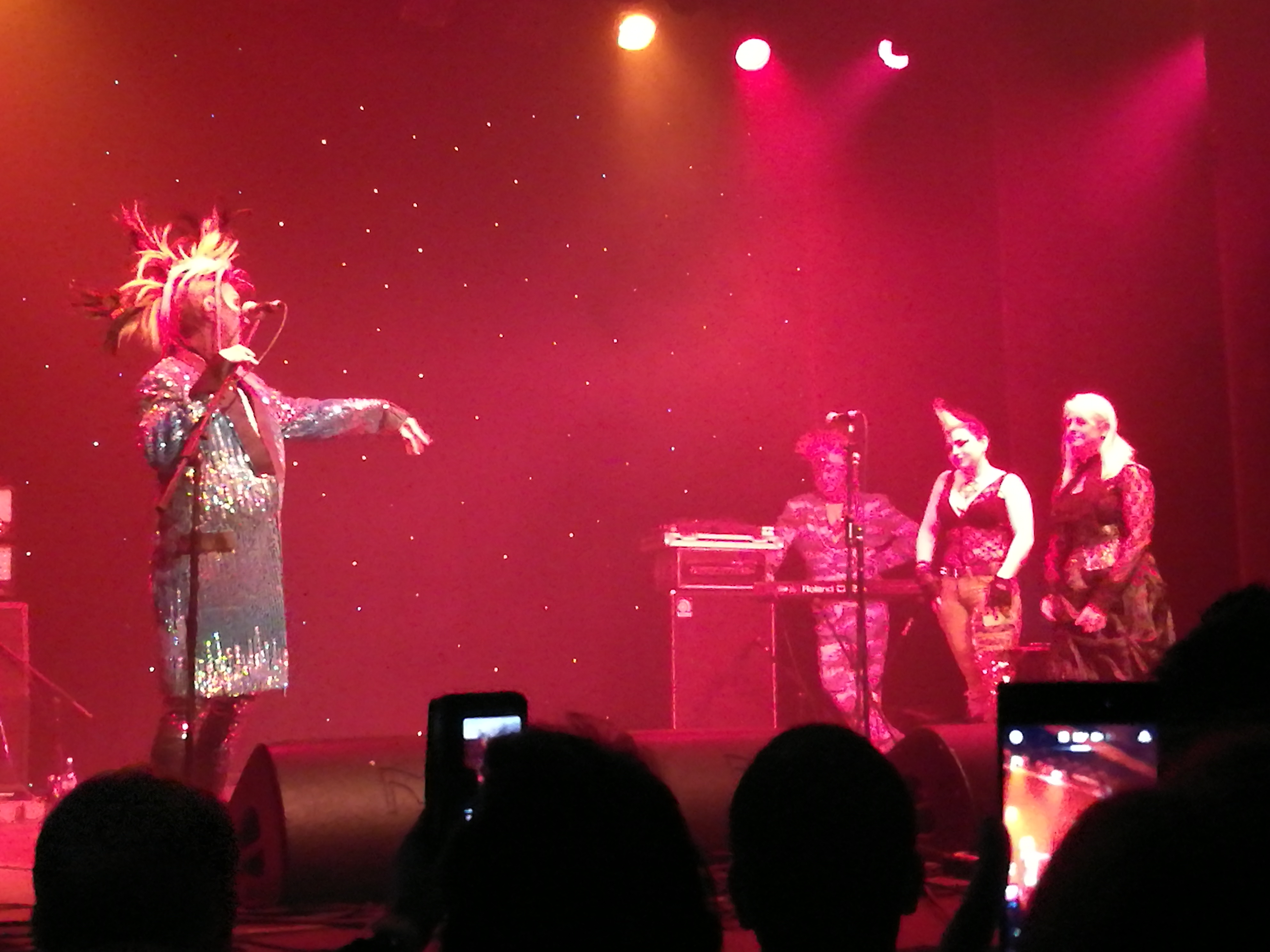 Sigue Sigue Sputnik Electronica – Back again after performing at the 2015 and 2016 events, Martin Degville (from the original lineup) and SSSE are a predictable panoply of glitter and horny extravagance. He’s still a stand-out vocalist, crooning and crowing equally ably. We get classic anthems like Satellite of Love, but then a sad and surreal moment when Degville reveals a recent struggle with cancer and sends round a collection bucket. I don’t begrudge donating but it bloody derails the momentum of a gig! Then, he decides to present his thigh-high gold glitter boots to some lucky punter, and congratulations go to ‘Waspy’ for winning and for taking it seriously when she parades across the stage in just one boot! SSSE deliver a few more tracks impeccably, and end on Love Missile – naturally. If it wasn’t for the bizarre segues, it was a very slick – if familiar – set.