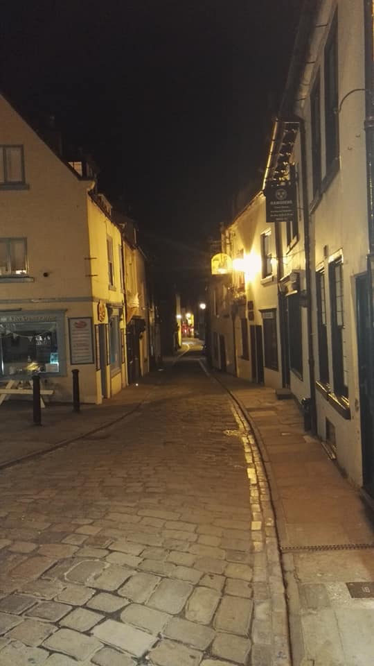 Chaotic sequence finding out whose birthdays coincide with the gig. Janine turned 61 yesterday. “You’re older than the dirt they’ll bury you in”. She flips him off with a smile. #Whitby #whitbygothweekend