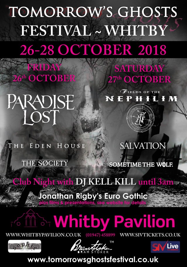 Goth rock legends Fields of the Nephilim and gothic metal pioneers Paradise Lost will headline a brand new event called Tomorrow’s Ghosts, held during the long-running Whitby alternative festival in October.