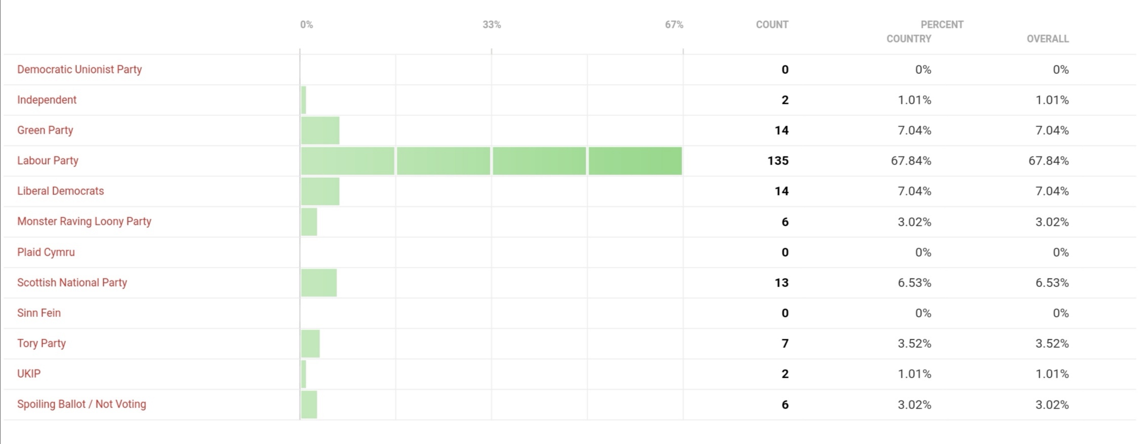 Equally telling was The Brexit Party receiving not a single vote. The single-issue fringe party, whose leader receives bizarrely prominent coverage in the British media, was equally devastated in the General Election.