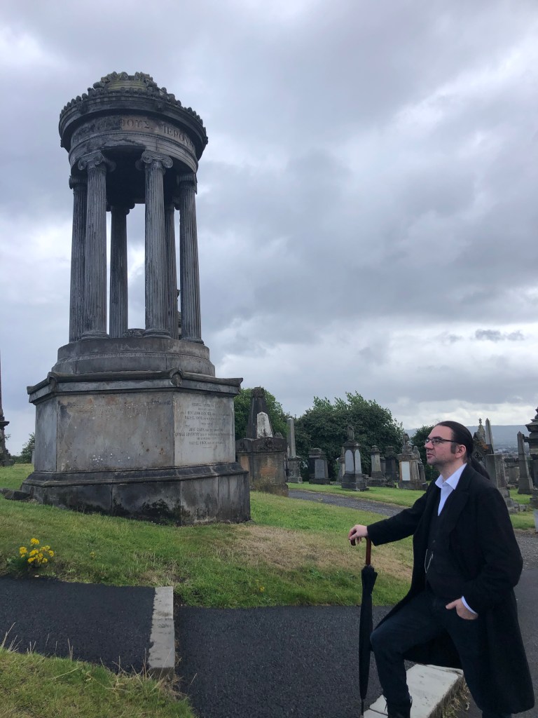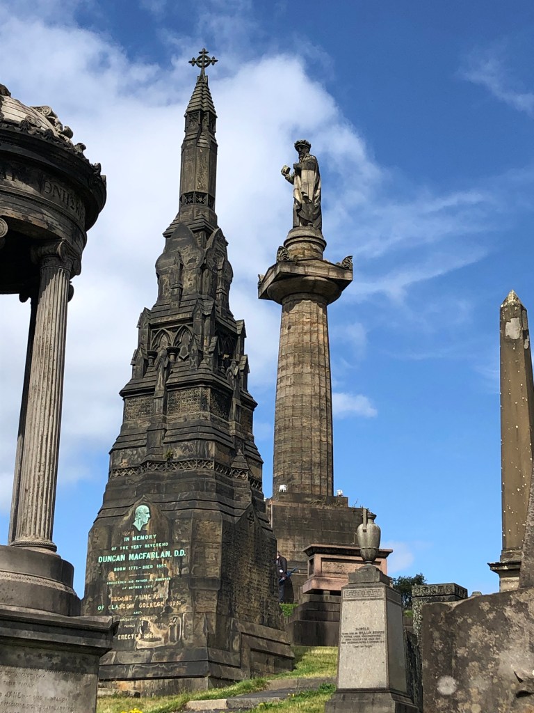 How about a guided tour of a vast cemetery, housing 50,000 dead on a prominent hill overlooking Glasgow? Every visit I’ve made to this fine city has been capped with a visit to the Père Lachaise of Scotland, but the delectable Dr. C had never had the pleasure before – so I arranged a visit with the helpful folk at Friends of Glasgow Necropolis and was lucky enough to secure two places on their very first tour, on the very first day they reopened after COVID lockdown.