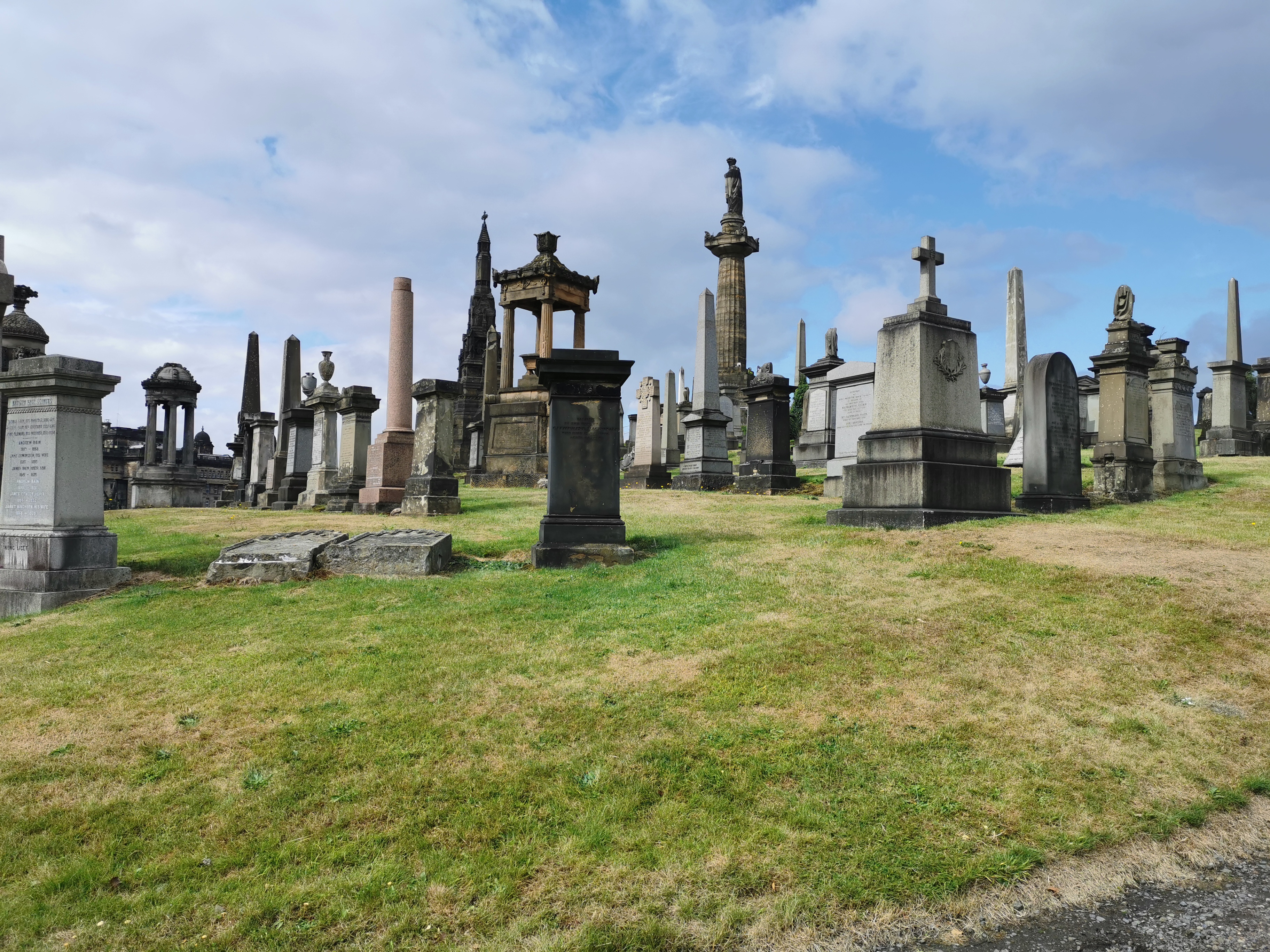 How about a guided tour of a vast cemetery, housing 50,000 dead on a prominent hill overlooking Glasgow? Every visit I’ve made to this fine city has been capped with a visit to the Père Lachaise of Scotland, but the delectable Dr. C had never had the pleasure before – so I arranged a visit with the helpful folk at Friends of Glasgow Necropolis and was lucky enough to secure two places on their very first tour, on the very first day they reopened after COVID lockdown.