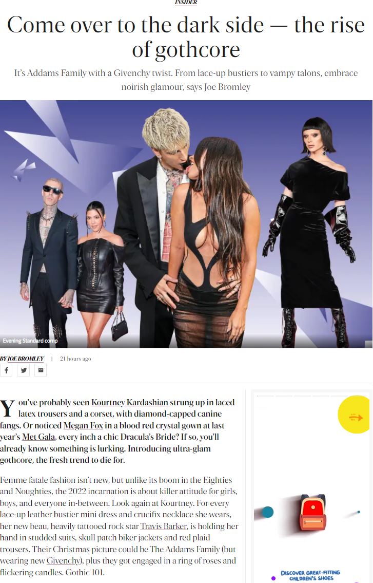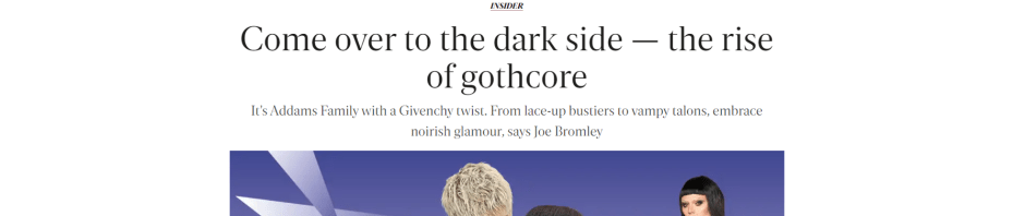 I was delighted with the response to an idle Twitter thread where I excoriated an article in The Guardian for introducing the concept of ‘gothcore’. Essentially it’s celebs dabbling in corsets, boots and black tops and trying to pass it off as something new…
