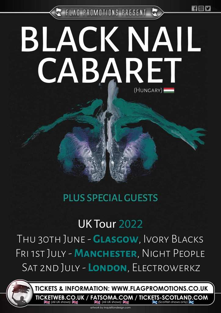 Meanwhile, ever prolific Flag Promotions have several irons in the fire with bands on their books roaming the country later this year. Whether it’s the familiar but fiery performances of Siouxsie songs by ‘Lizzie and the Banshees’, or the exotic European appearance of ‘Black Nail Cabaret’, the discerning goth will be able to pick from the array of events provided. The sharp-eyed may even enjoy the appearance of this blog’s author at the Metropole Gig on 28 October in Whitby…!