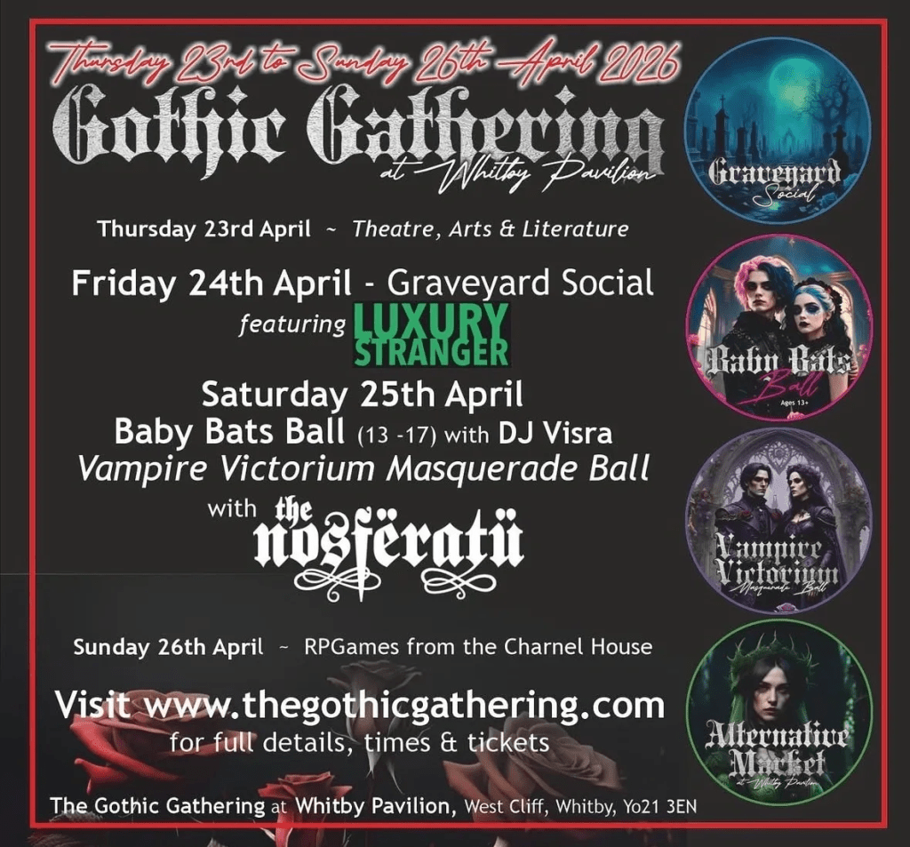 A brief update this time just to note I’m headed back to Whitby for the first time since 2022! Do ensure you’re following my socials as I pinball around the venerable home of UK Goth. I also feel obliged to highlight again the distinction between what is held this weekend and what is taking place over the May bank holiday weekend, a week later.